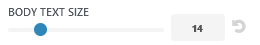 Standaardwaarde in het Divi is 14 pixels. Door de schuifregelaar te verschuiven of door het gewenste aantal pixels in te voeren kan de lettergrootte aangepast worden.
